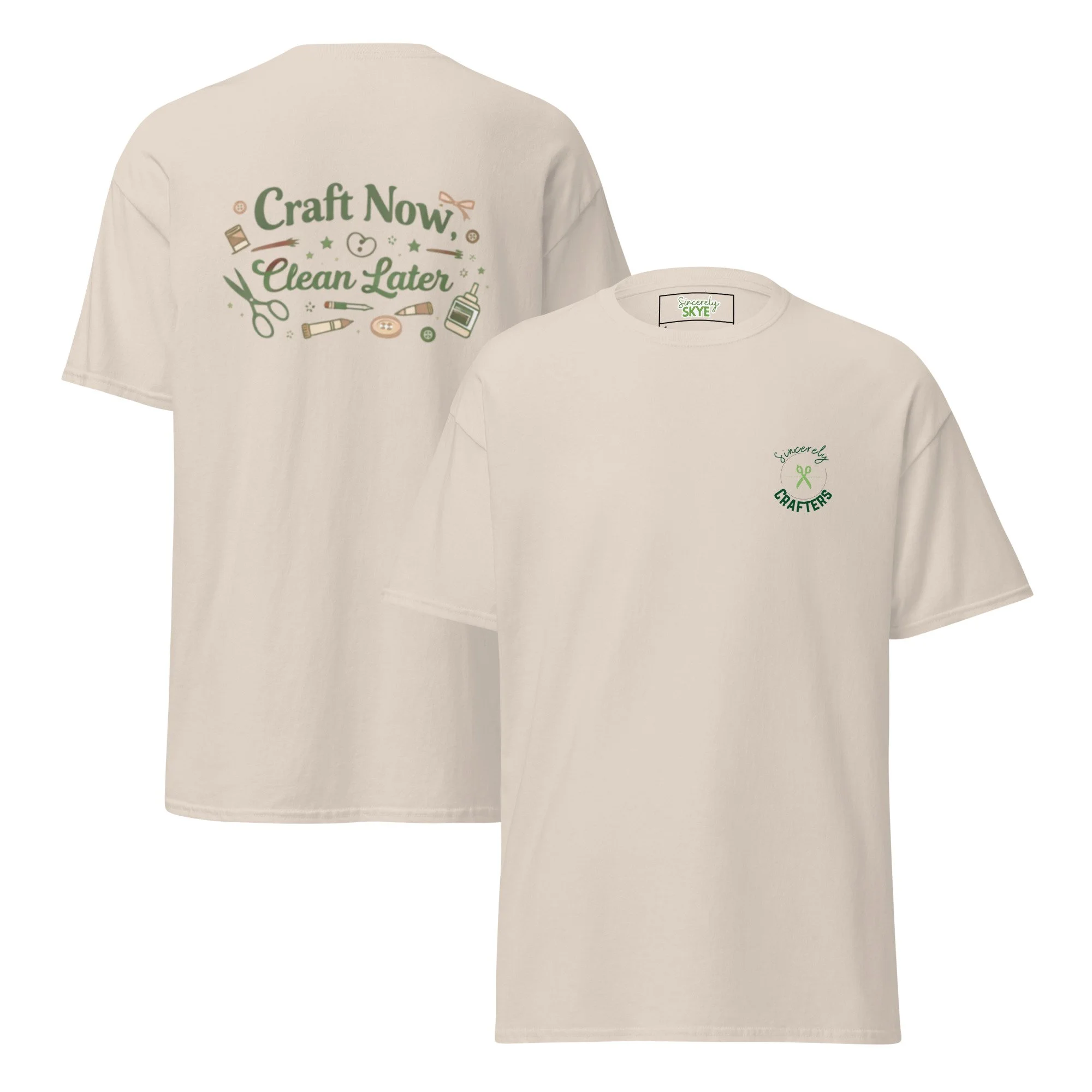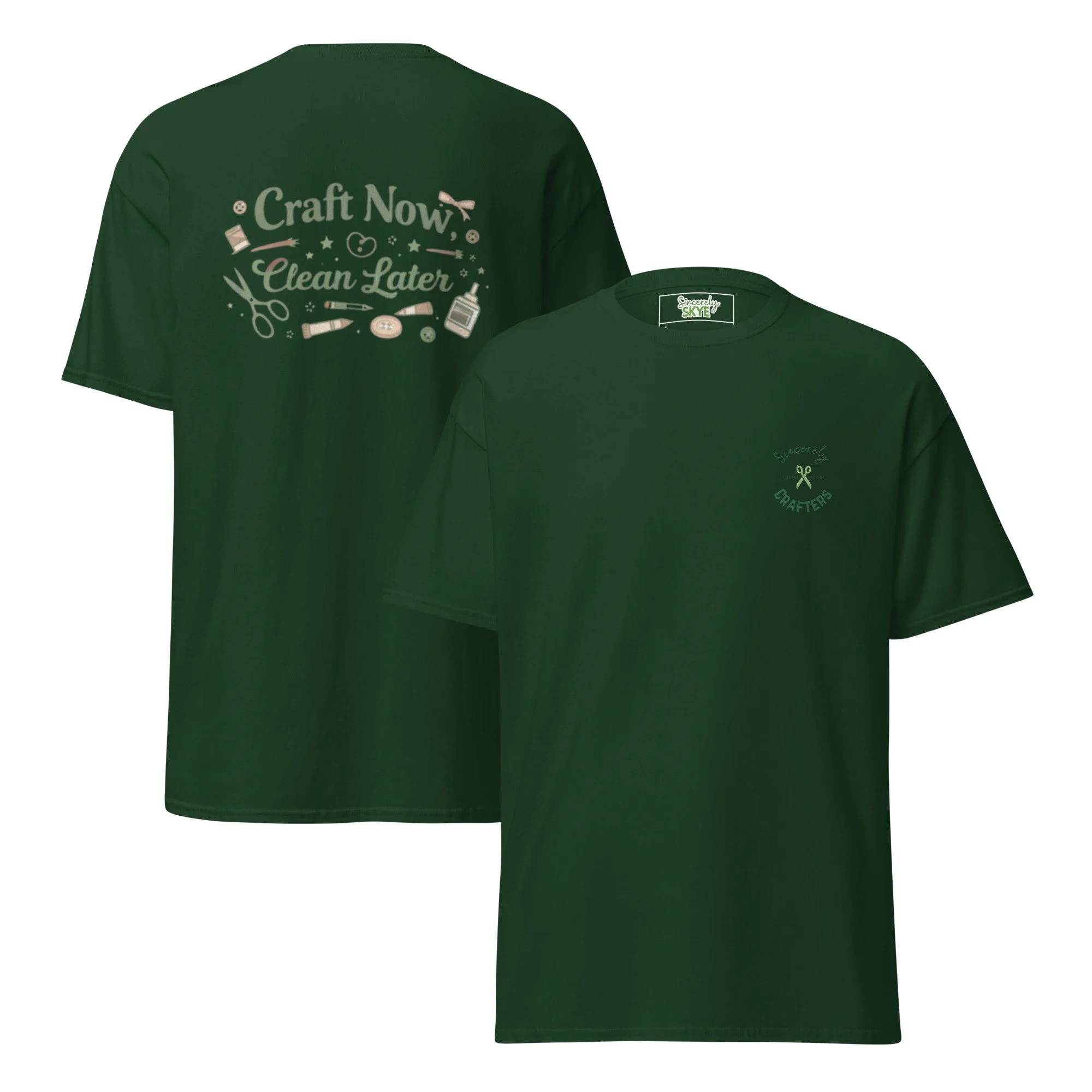 Our “Craft Now, Clean Later” tee is made for makers who get lost in the moment—where creativity flows, the glue gun is hot, and the mess can wait. Whether you're deep into wreath making, DIY projects, or late-night crafting sessions, this shirt is your badge of honor.